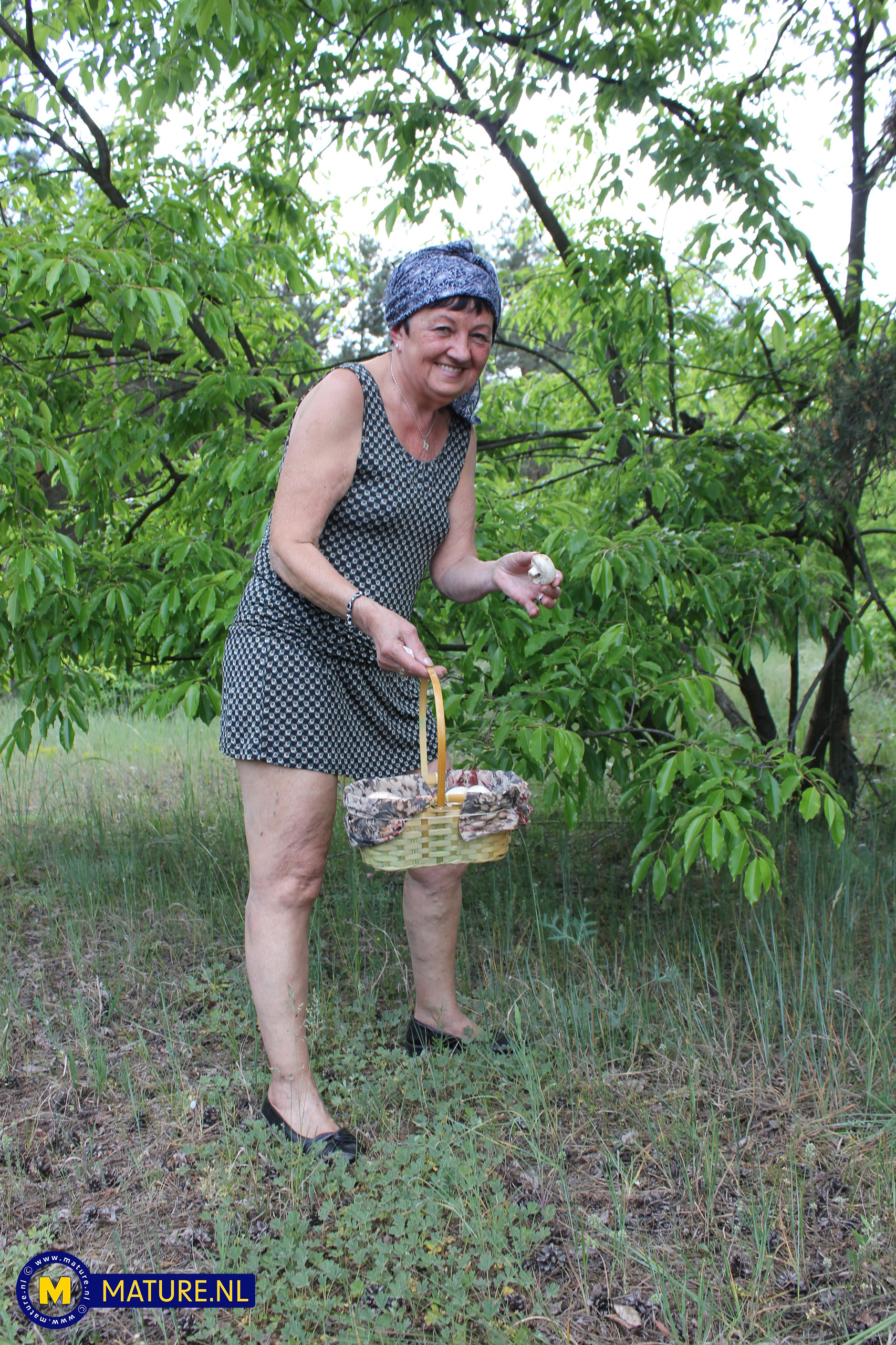 73 year old grandma Hanna D. seduced a younger stranger to fuck her in an open field