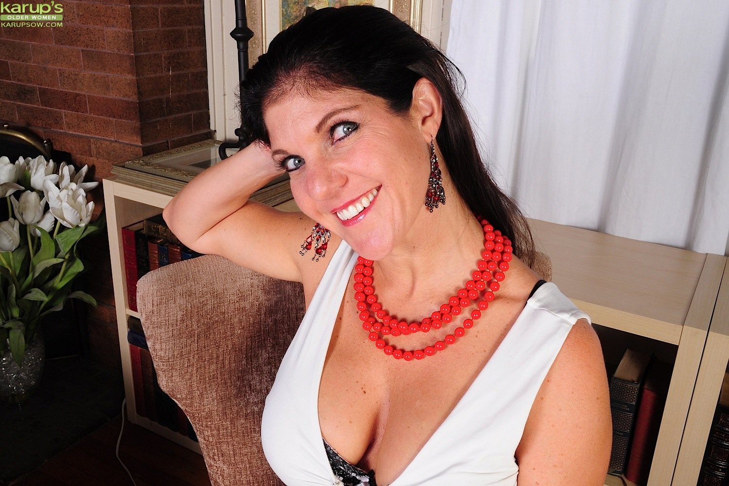 Busty housewife Coralyn Jewel pulls her panties down past her great ass.