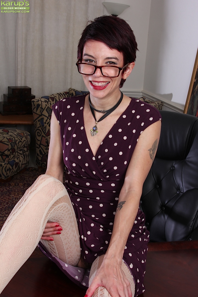 Hairy mature amateur Nikki Lee spreads her bush.
