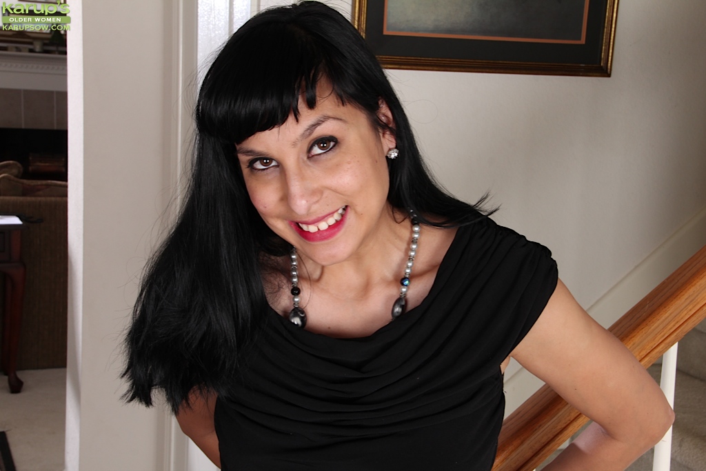 Hairy MILF Penelope Patterson in only black stockings.