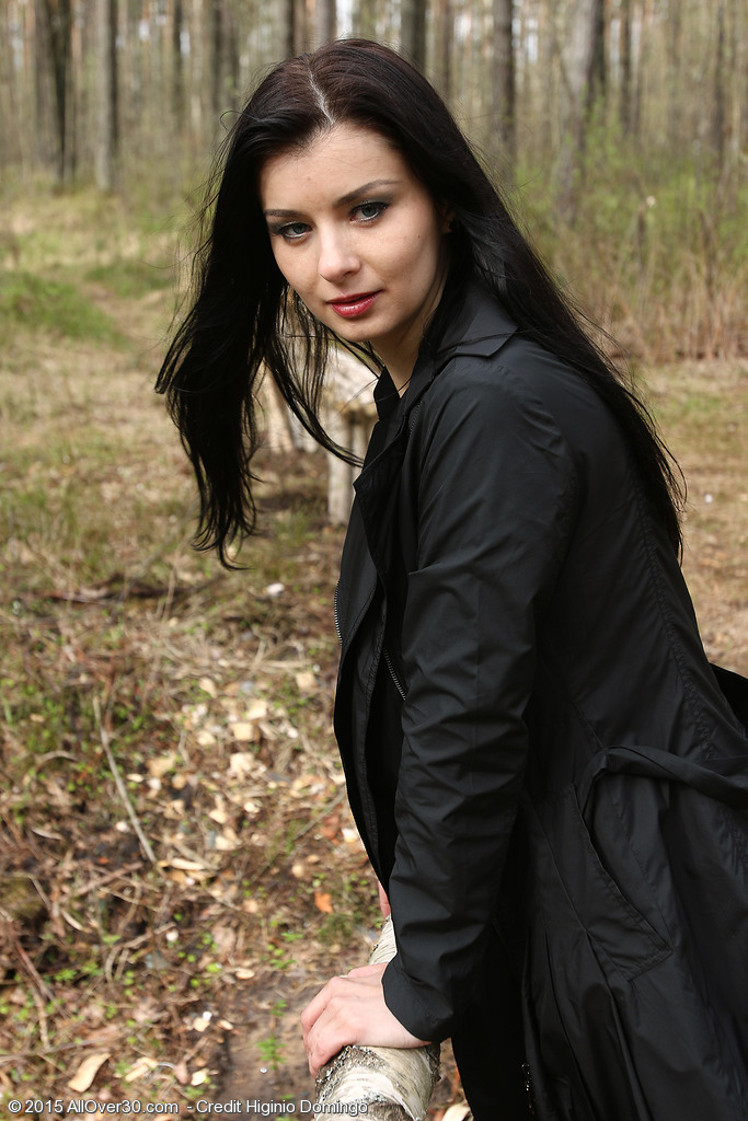 31 year old Helena Black playing with her pussy while in the forest