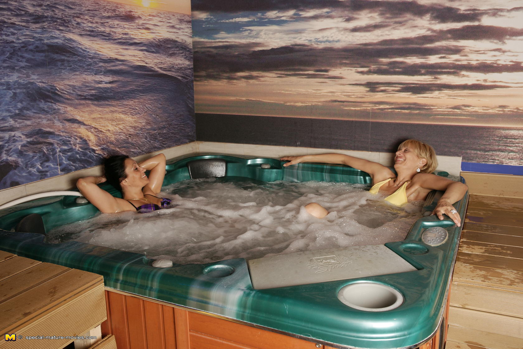 Mature women relaxing in a sauna