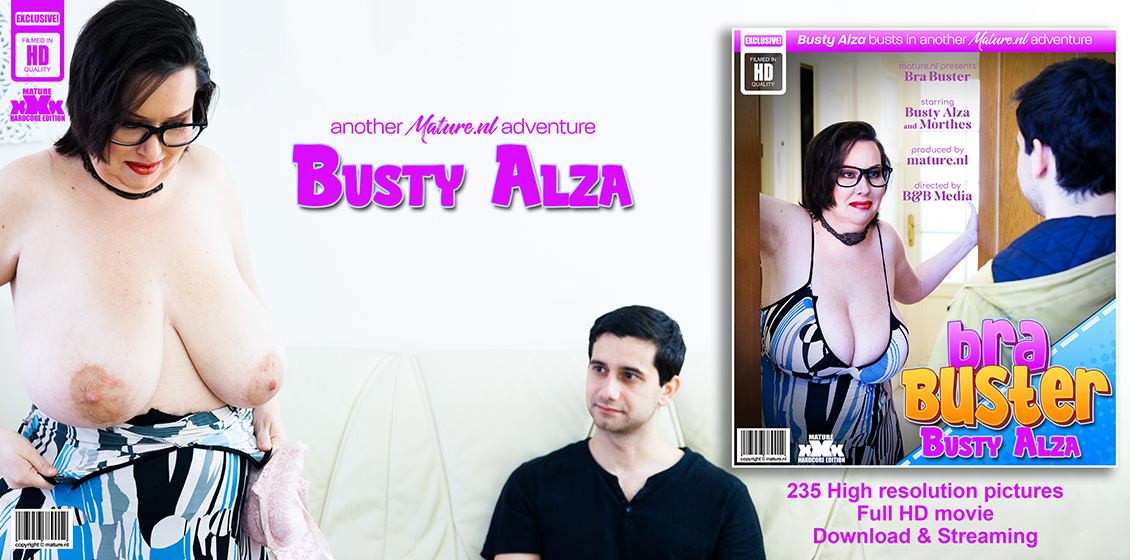 Mature.nl - Curvy Milf Busty Alza with her big natural saggy tits is doing a young bra salesman