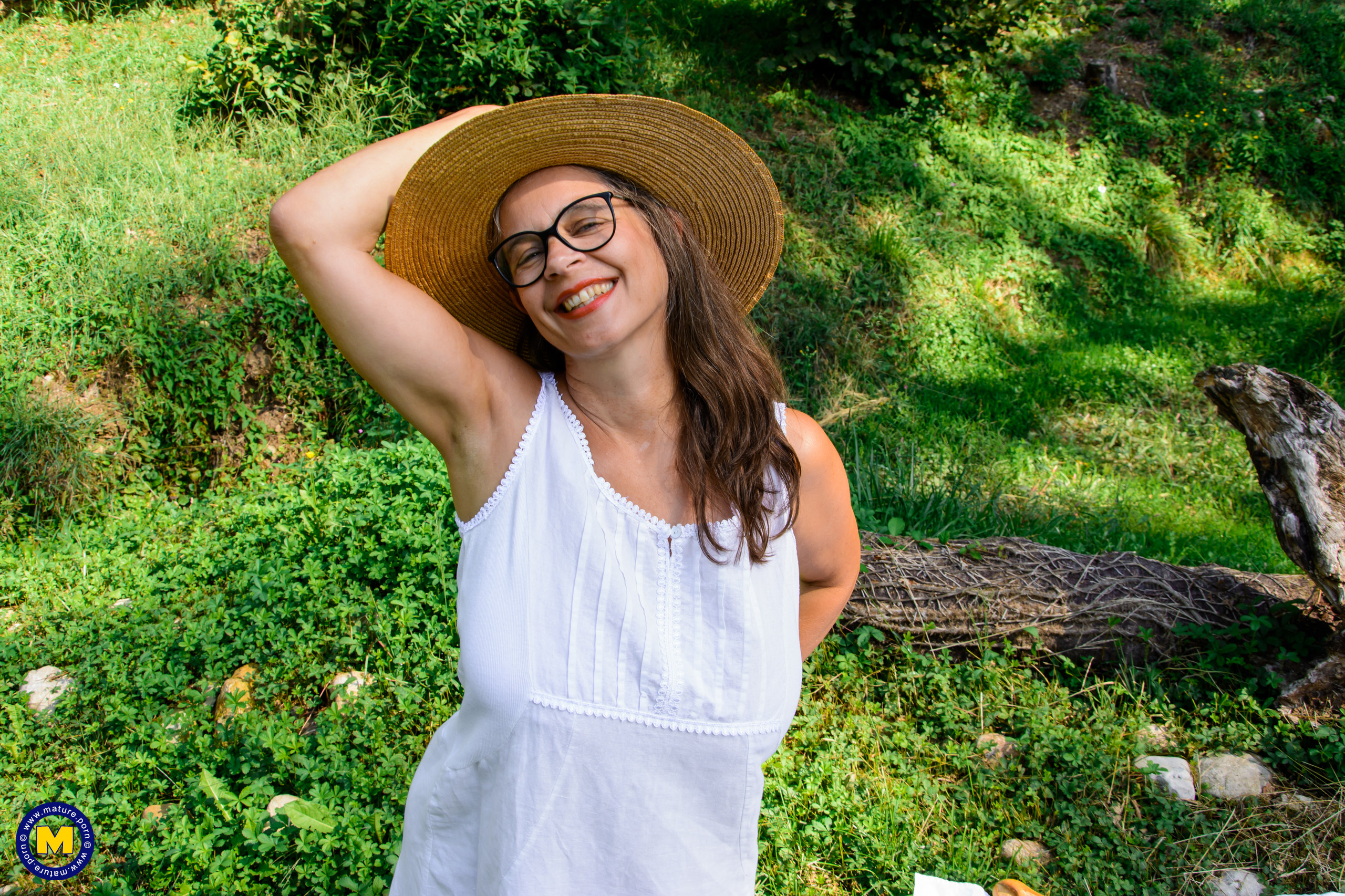 Mature.nl - Hairy Busty Tina loves to get wet outside in the grass