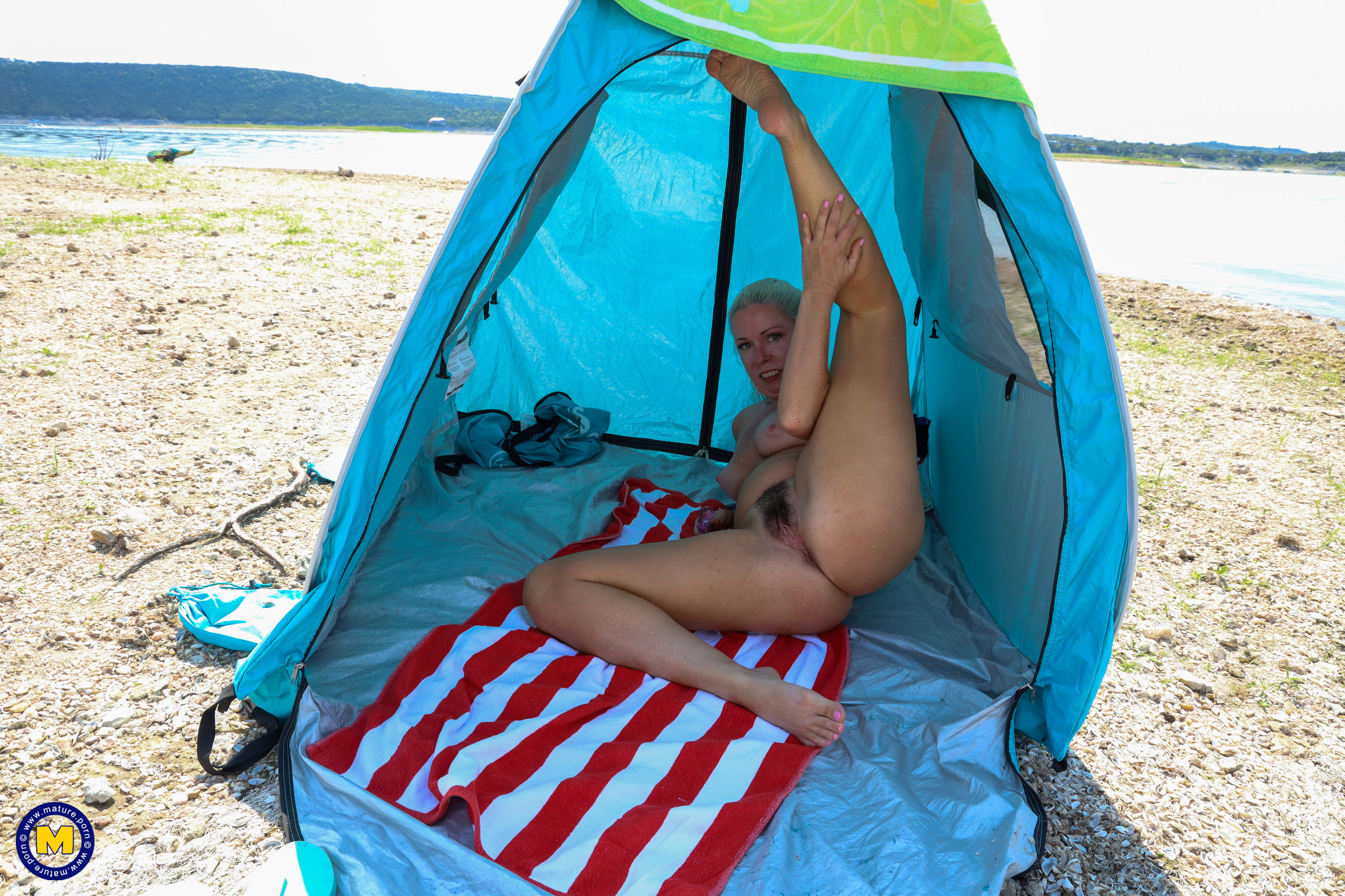 Mature.nl - See voyeur MILF Beth show off her hairy pussy at the beach