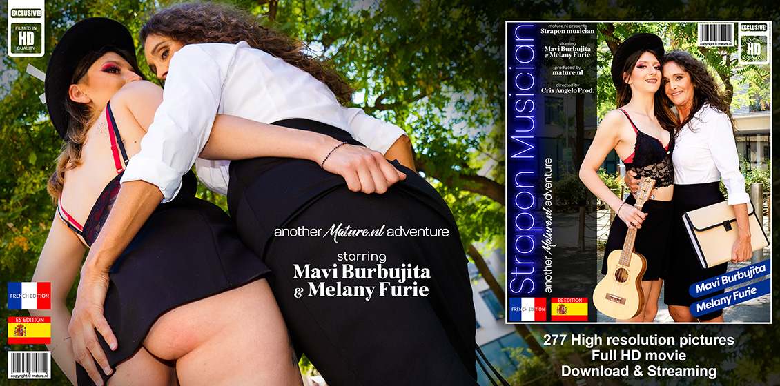 Mature.nl - Spanish MILF Mavi Burbujita does hot young skinny French Melany Furie with a strapon