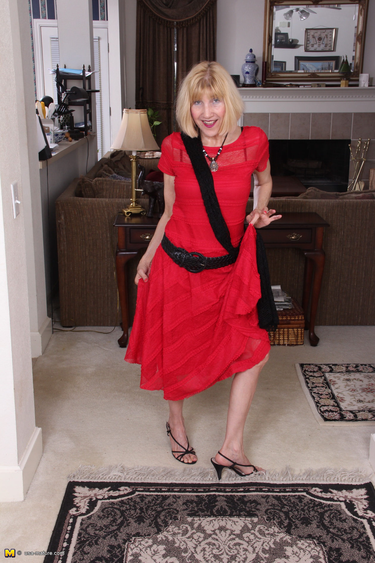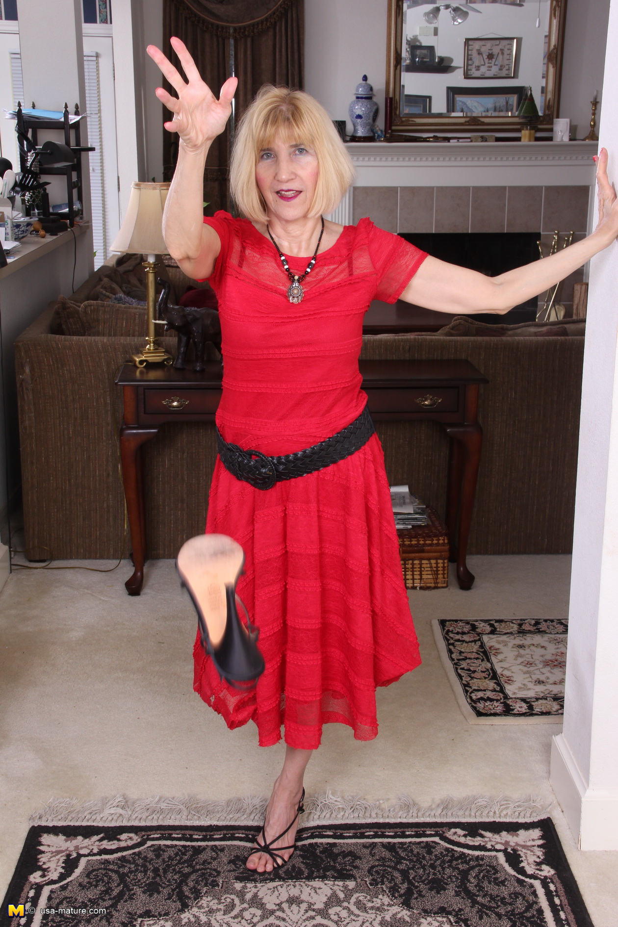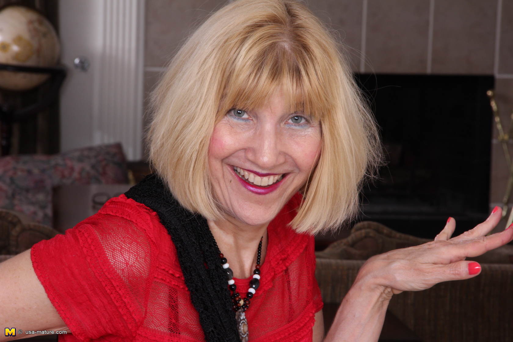 Naughty American mature lady teasing and playing