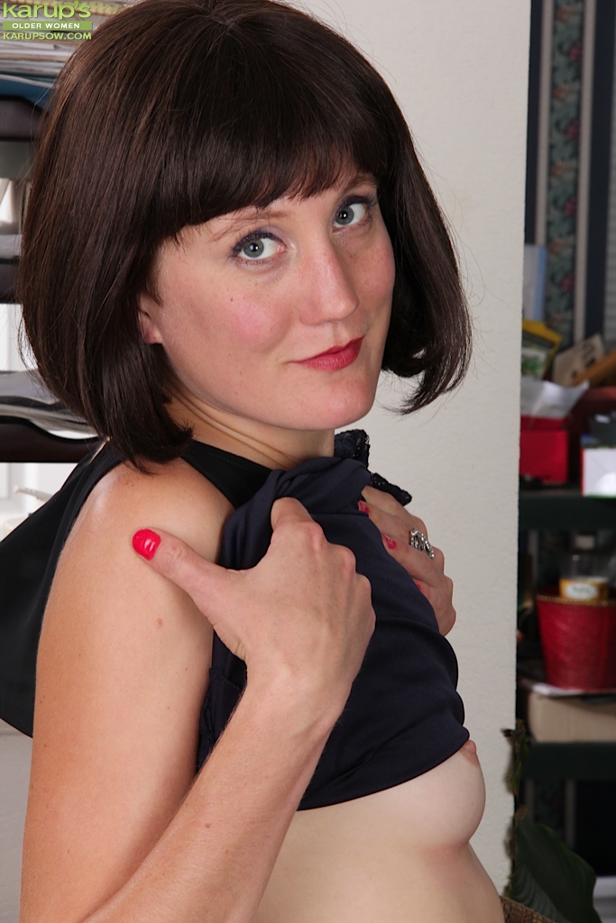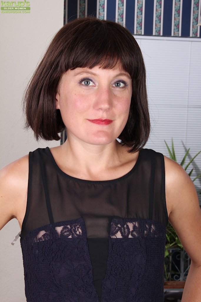 Sexy housewife Meredith Johnson dildos her older pussy.