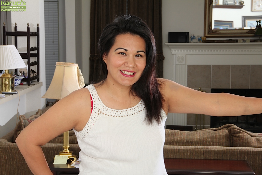 Thick MILF Susie Jhonson spreads her dark pussy lips.