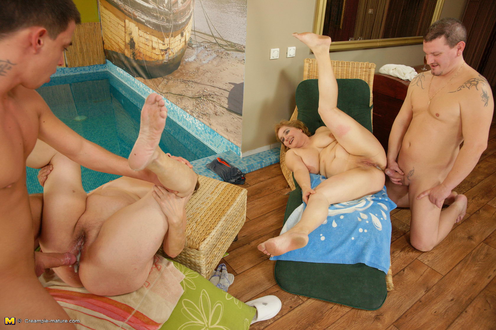 Two mature sluts get a warm creampie